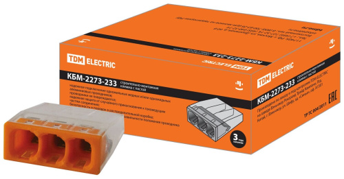 0% Элктр. контактные соединения Строительно-монтажная клемма КБМ-2273-233 (2,5мм2) с пастой TDM 21 шт 0% 7 ₽ Цвет: Чёрный