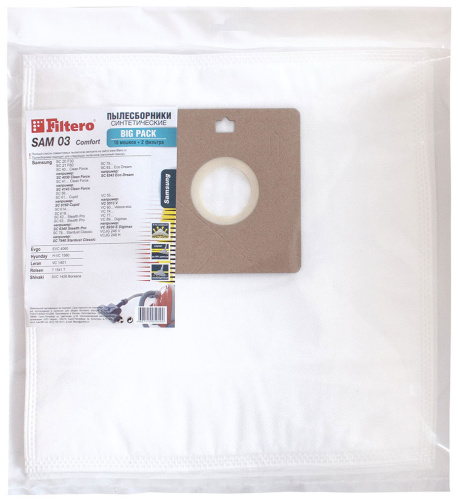 0% Фильтры Мешки для пылесоса SAM-03 Comfort, Big Pack 10шт. + 2 фильтра 1 упак 0% 750 ₽ Цвет: Чёрный